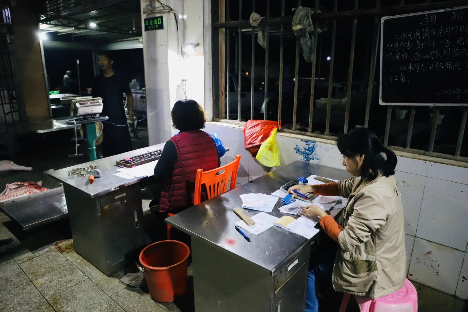 為確保兩鎮(zhèn)居民能在早市買到新鮮的生豬肉品,爵山食品公司的生產線必須趕在每天上午6點前完成電城、爵山、博賀、龍山四家食品公司的生豬屠宰,并將豬肉及時分發(fā)運輸到電城、博賀兩鎮(zhèn)的各大菜市場。