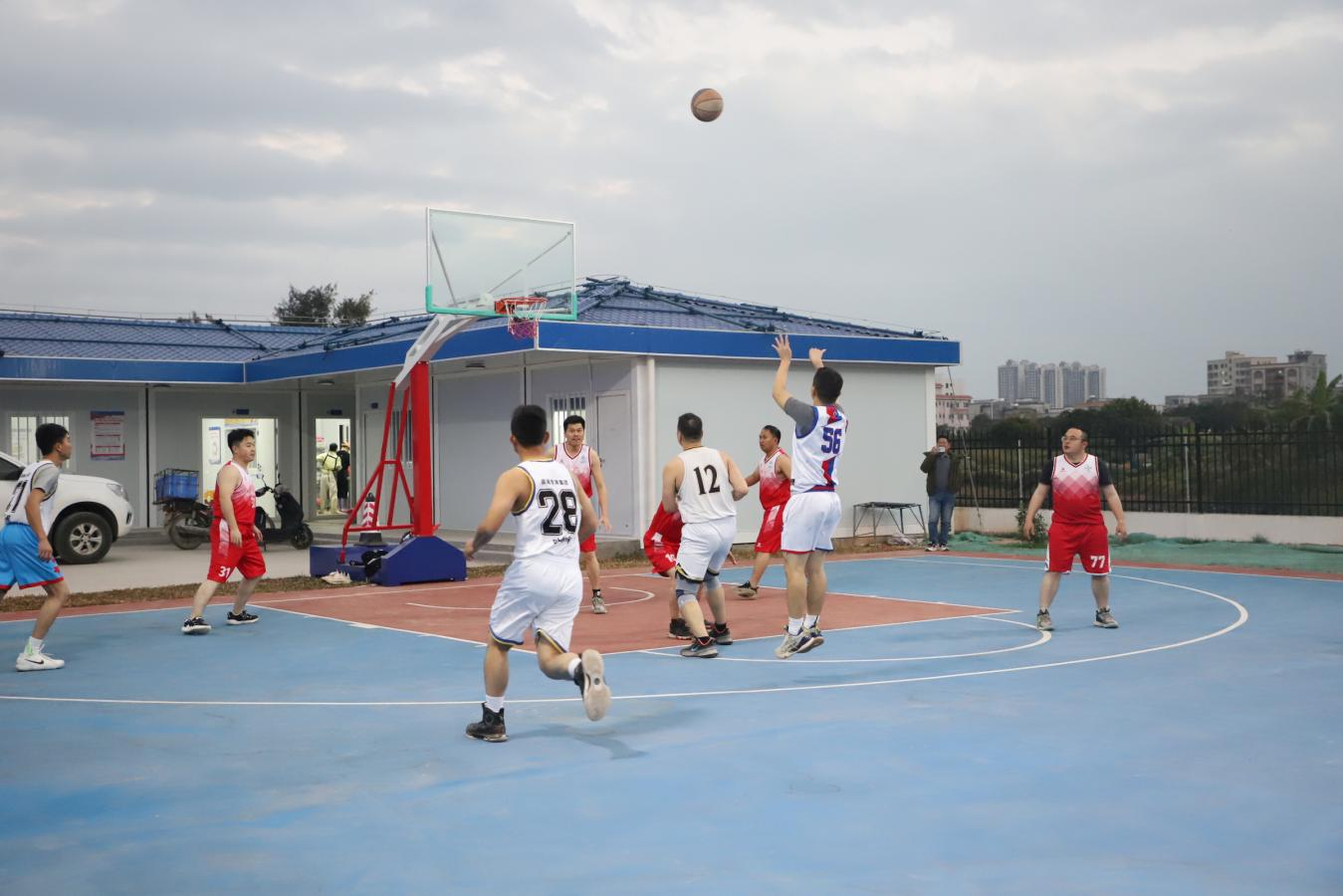 現(xiàn)場(chǎng)氣氛緊張熱烈,比賽精彩紛呈,一道道身影在籃球場(chǎng)上來(lái)回馳騁,帶球、運(yùn)球、投籃等一系列動(dòng)作瀟灑、帥氣,將團(tuán)結(jié)、拼搏、向上的精神展現(xiàn)得淋漓盡致,贏(yíng)得場(chǎng)外的陣陣喝彩聲。